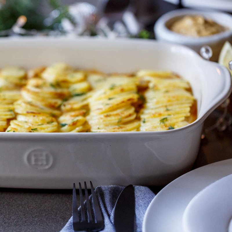 Since 1850, Emile Henry has produced in France a large range of high quality ceramic cooking utensils. With a 10 year, Our products are made from natural materials and have been designed and manufactured in France, in Southern Burgundy. Emile Henry unveils modern classics, an American inspiration and the first significant launch of an Emile Henry collection Since the original pie and lasagna dishes debuted in the early '90s. Modern classics is a range of cookware and bakeware that has been on the drawing boards for many, many months. It is truly an American collection as the shapes, capacities, and Dimensions were developed with an eye toward American foods, style and recipes. All of the shapes have been designed from the ground up to attract the American consumer while preserving the intangible design elements and the performance properties of Emile Henry. Deep enough for 4- 6 layers of lasagna or you can make a delicious moussaka or even a tiramisu ! a Family dish, It is easy to manipulate thanks to its comfortable handles. All Emile Henry products are made in France and offer a ten years.