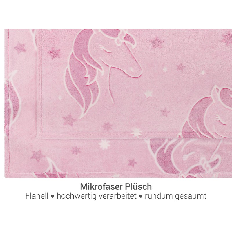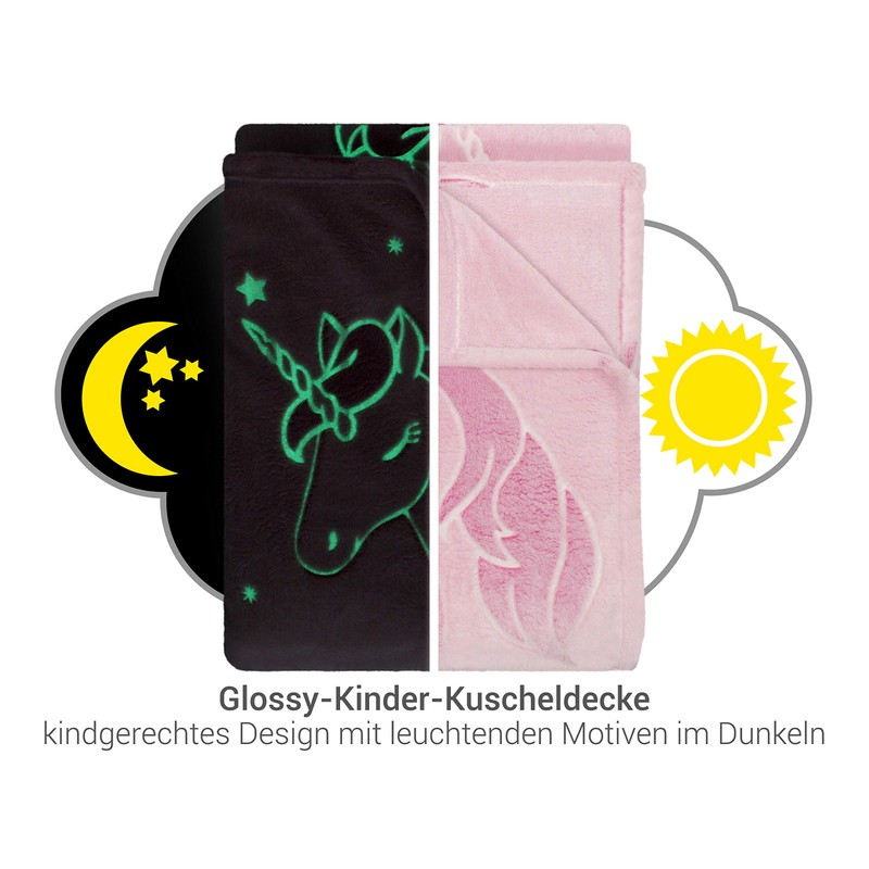 • Box contents: 1 piece – luminous cuddly blanket approx. 100 x 150 cm, unicorn pink