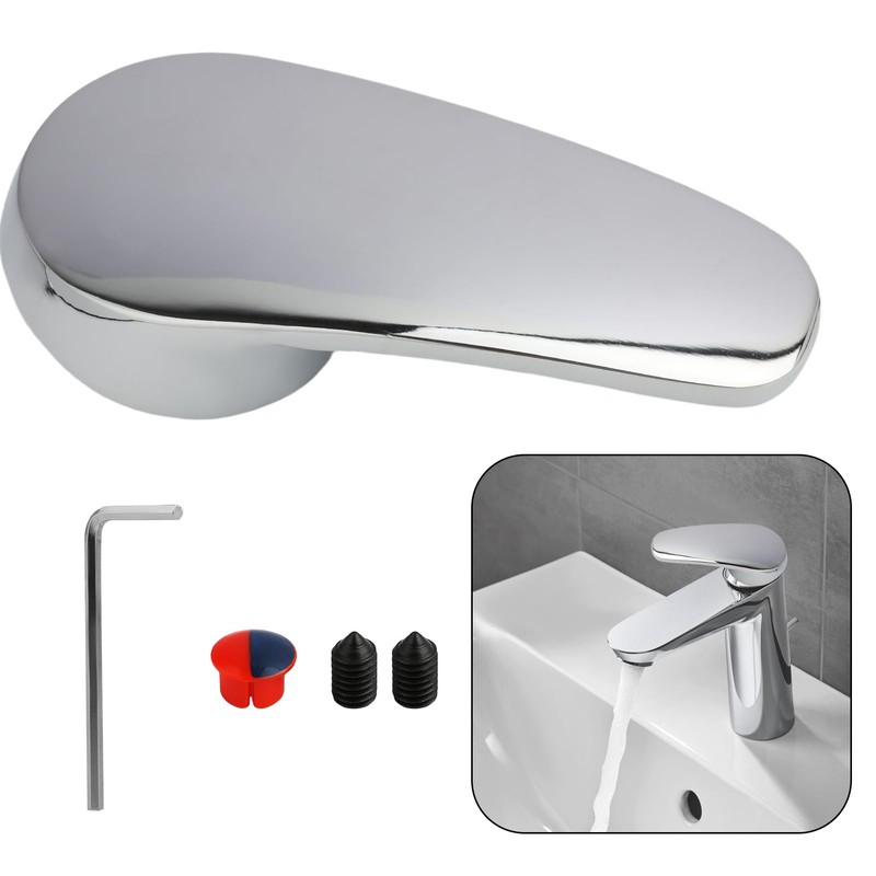 - COMPLETE KIT FOR INSTANT USE Included are a faucet lever handle, set screw and color coded badge for hot and cold settings, allowing for instant and correct installation.