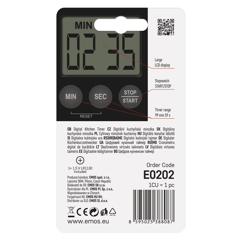 - Count-down and count-up function (stopwatch), max. 99 minutes. 59 seconds.