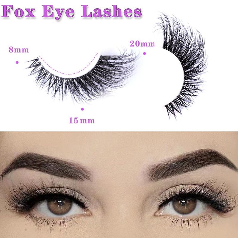 Emotao False Eyelashes Natural Cat Eye Lashes Lightweight 10 Pairs C Curl Wispy Eyelashes Curly 3D Faux Mink Eyelashes Pack (Natural Fox Eye W11)