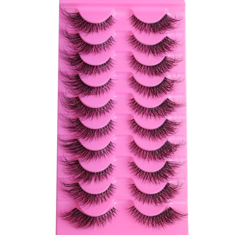 Wispy false eyelashes - Illuminate the charm of your eyes! Specification of Fake Eyelashes Material: Cruelty free premium pbt fiber Hair Length: 12mm-18mm Styles: Natural & Wispy manga Style Package: 10 Pairs fake lashes How to Apply 1.Trim Curl your lashes and trim false lashes to fit your eyes. 2.Brush Brush glue on the lash band, a little more on head and tail. 3.Wait Wait for about 30 seconds until the glue turns clear. 4.ApplyApply along your lash line. Push gently inward for better adhesion to the eyelid! 5. PrettyApply mascara and eyeliner to make them look more natural and that’s pretty much it!