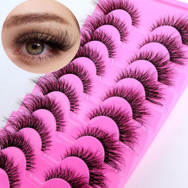 Emotao False Eyelashes Natural Cat Eye Lashes Lightweight 10 Pairs C Curl Wis...