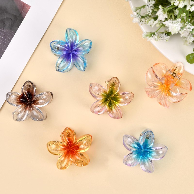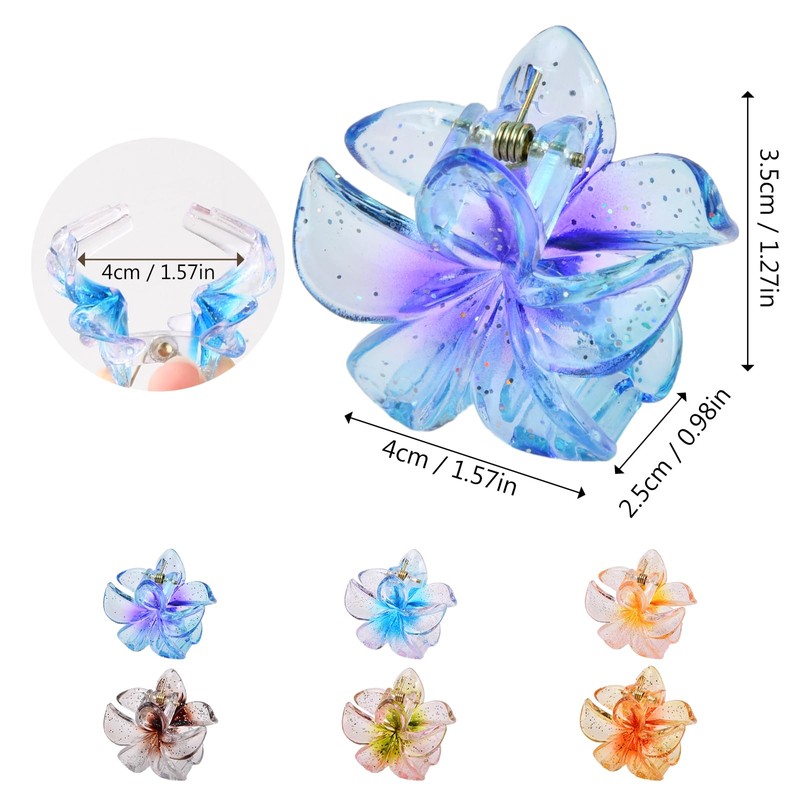 - Functional and aesthetical: These trendy flower claw clips are Hawaii Style. Perfect for going vacation. These hair claw clips are not only cute and pretty but also functional, can hold all your hair up tightly when you're cleaning your face, bathing, making up, cooking, doing chores or working. It's for your everyday use! Available in 6 colors, which provide a variety of options for your daily wear.