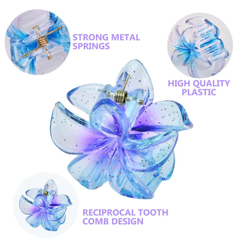 - Material: Made of high quality plastic. The cute hair claw flower design is flexible and durable. Easy to use and not easy to damage. The big claws are non-slip, so it can hold your beautiful hair firmly, won't fall out easily, won't damage your hair, keep your hairstyle.