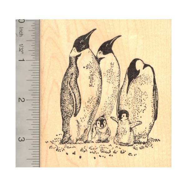 Emperor Penguins with Chicks Rubber Stamp