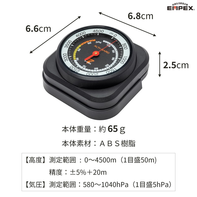 EMPEX FG-5102 Analog Altimeter, Barometer, Altimax 4500, Black, 2.6 x 2.7 x 1.0 inches (6.6 x 6.8 x 2.5 cm)