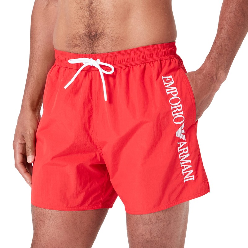 Emporio Armani Swimwear Men's Boxer Embroidery Logo Swim Trunks, Ruby Red, 52
