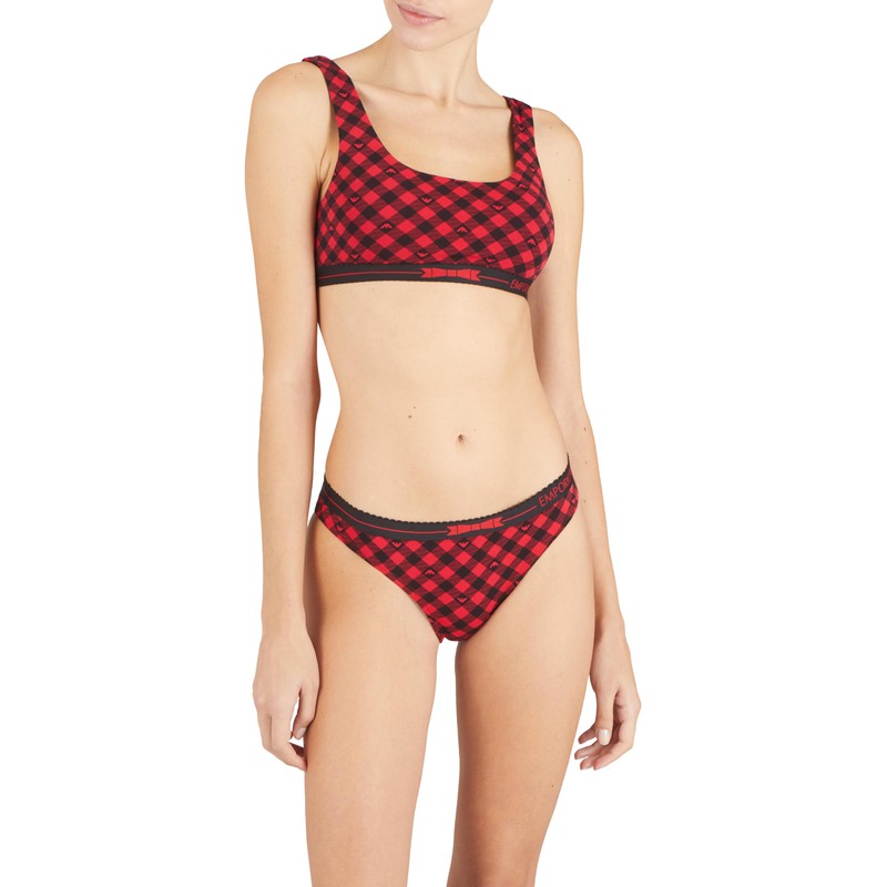 Emporio Armani Women's Tartan Christmas Cotton 2-Pack Brasilian Brief, Vichy Red/Black, X-Large