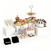 - Nestable designThe hollow bottom design of these dessert display stands allows for easy nesting and stacking and can be combined in a variety of display methods. The white buffet risers' seamless construction (0 glue joints) with stands constant venue changes
