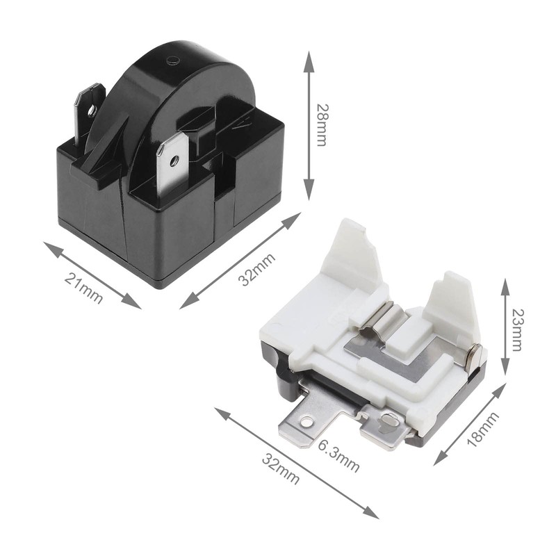 -The size of the 15 ohm 2-pin refrigerator starter relay is 3.2x2.8x2.1cm/1.26x1.1x0.83 inch, small size, light weight and good performance.