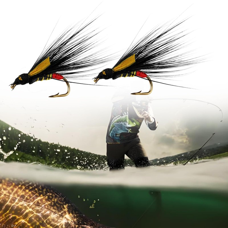 EMSea 4x Black Cormorant Wet Trout Flies Fish 10 Hooks Suitable for Fishing Water Trout