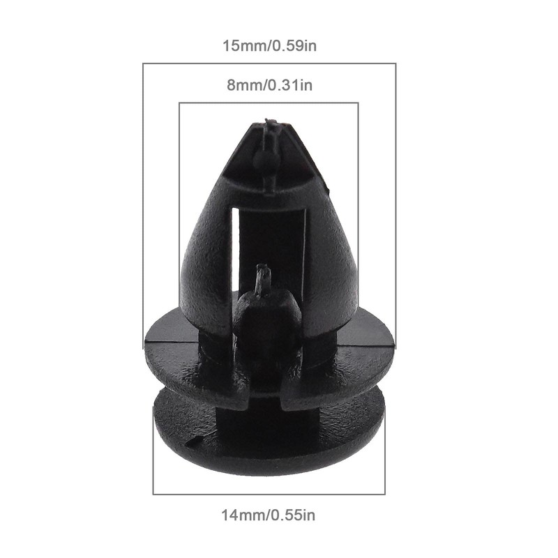 -Suitable for 8mm hole. Diameter of the insert pin head is 14 mm, diameter of the bottom clip head is 15 mm.