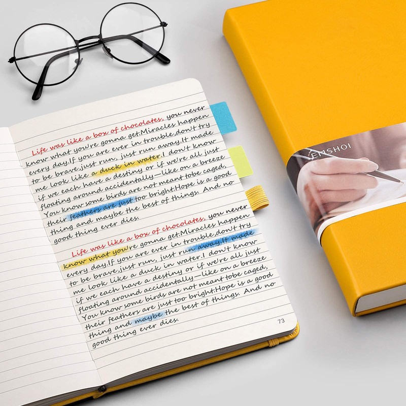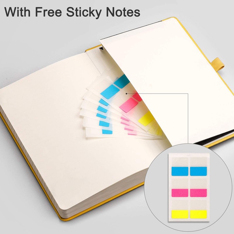 EMSHOI A5 Notebook - 21.4 x 14.5 cm Lined Journal with 256 Numbered Pages, 120gsm Thick Paper, Sticky Notes, 8 Perforated Sheets, Hardback Vegan Leather Notepad for Women Men Writing - Yellow