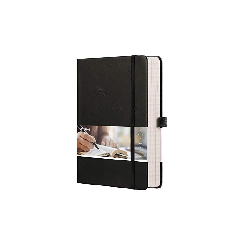 EMSHOI Graph Paper Notebook - 256 Pages A5 Graph Notebook/Journal, Hard Cover, 120gsm Thick Paper, Smooth PU Leather, Inner Pocket, 5.75'' × 8.38''-Black