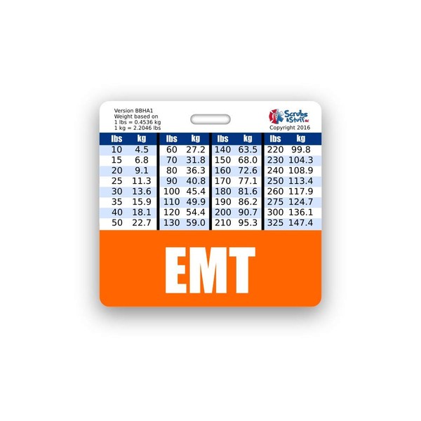EMT Badge Buddy Horizontal w/Height & Weight Conversion Charts (Standard, Orange)