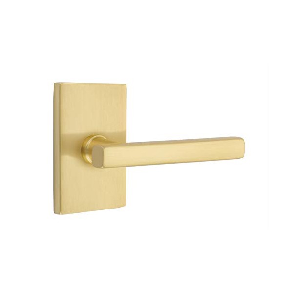 EMTEK Modern Rectangular Rosette Privacy Set with Matching Finish Freestone Lever - Choice of Left/Right Handing and 7 Finishes - 5212FRLRHUS4 - Right Handed (RH) - Satin Brass (US4)