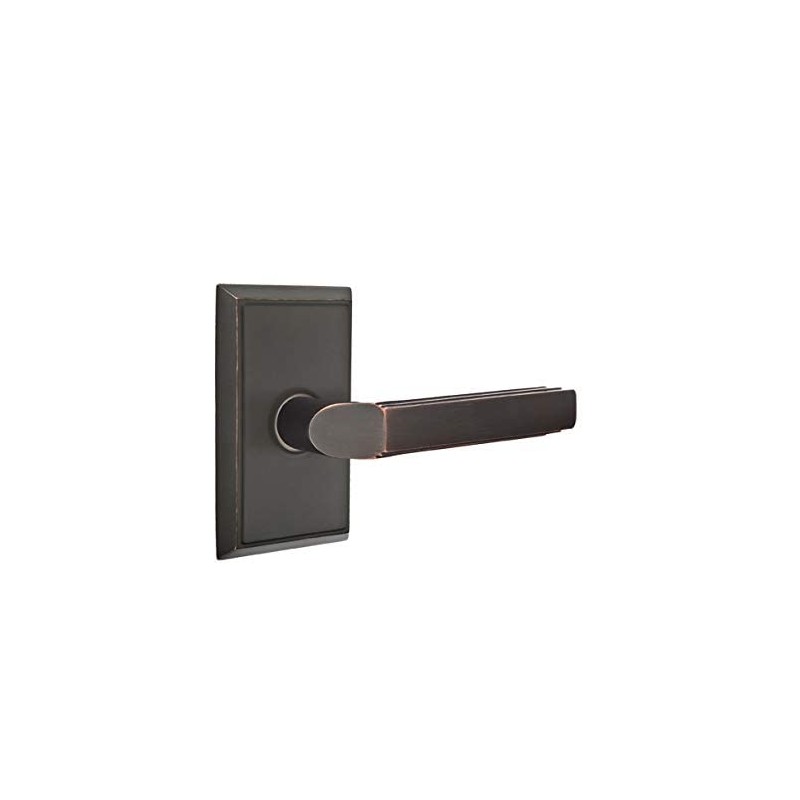 Emtek Passage Set, Rectangular Rosette, Milano Lever (Left Hand, Oil Rubbed Bronze)