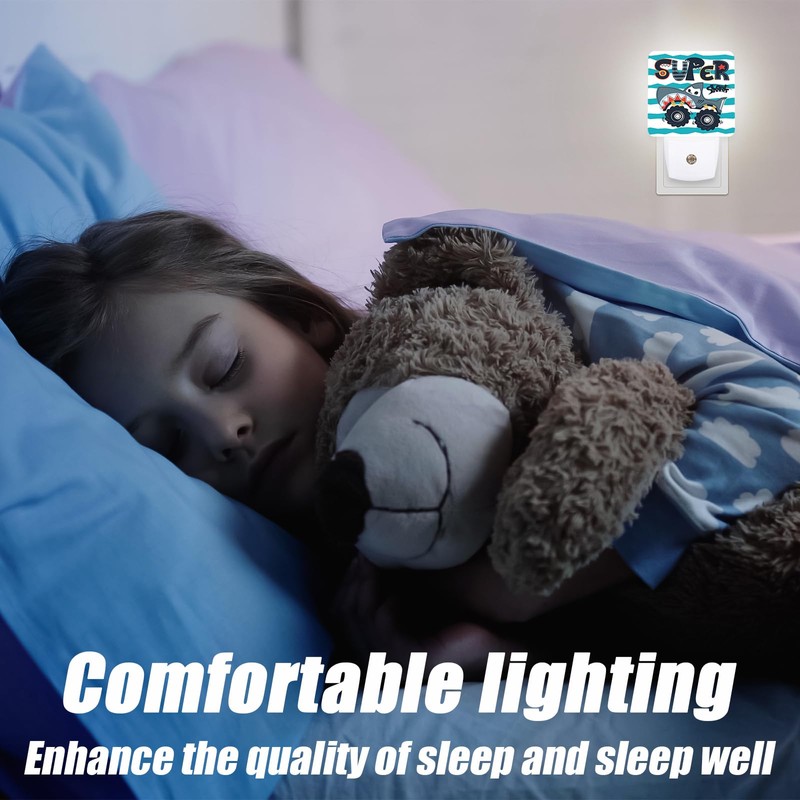 EMXION Shark Trucks Night Light,Cartoon Car Nightlight Plug into Wall,LED Lamp,Suitable for Bedrooms,Kitchens,Toilets,Etc.Auto Sensor Dusk to Dawn,Energy-Saving