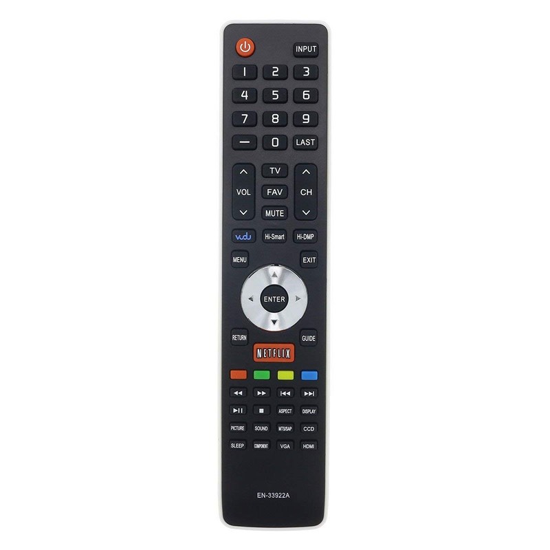 - EN-33922A TV remote control with Vudu, Netflix, HiSmart, and HDMI buttons.