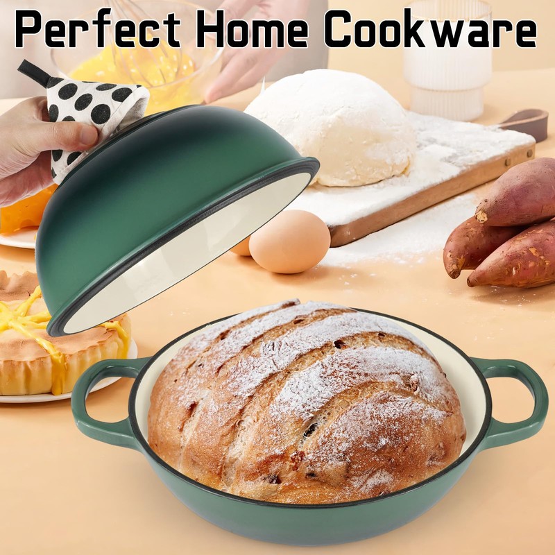 Enameled Cast Iron Bread Oven, Dutch Oven Pot with Lid & Cotton Potholder, 10" Bread Dutch Oven for Bread Baking, 6 Quarts Bread Pan with Dome Lid, Non-stick Cookware for Homemade Bread, Green