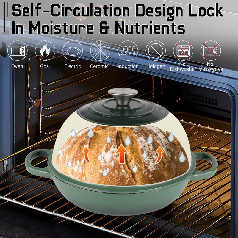 - EVEN HEAT DISTRIBUTION: Our cast iron bread oven can evenly transfer heat, preventing localized overheating or uneven temperature, helping to bake bread with a crispy crust and soft interior. Let your family and friends enjoy this unique cuisine !