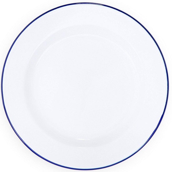 Enamelware Dinner Plate -Solid White with Blue Rim