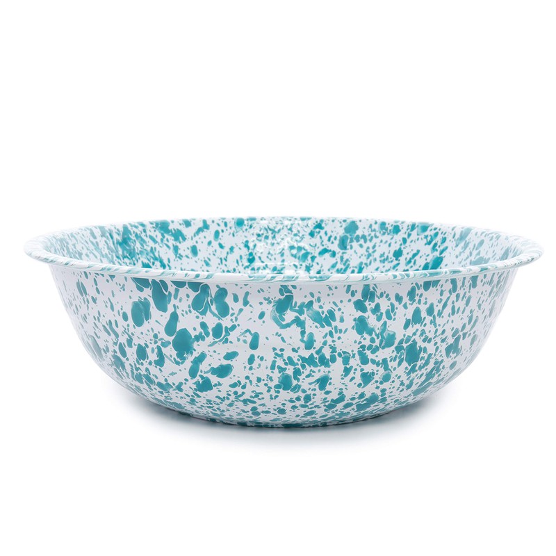 Enamelware Medium Basin, 8 quart, Turquoise/White Splatter (Single)