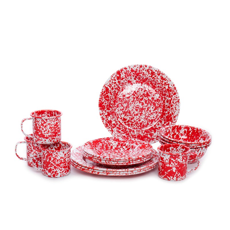 Enamelware Starter Set, 16 piece, Red/White Splatter