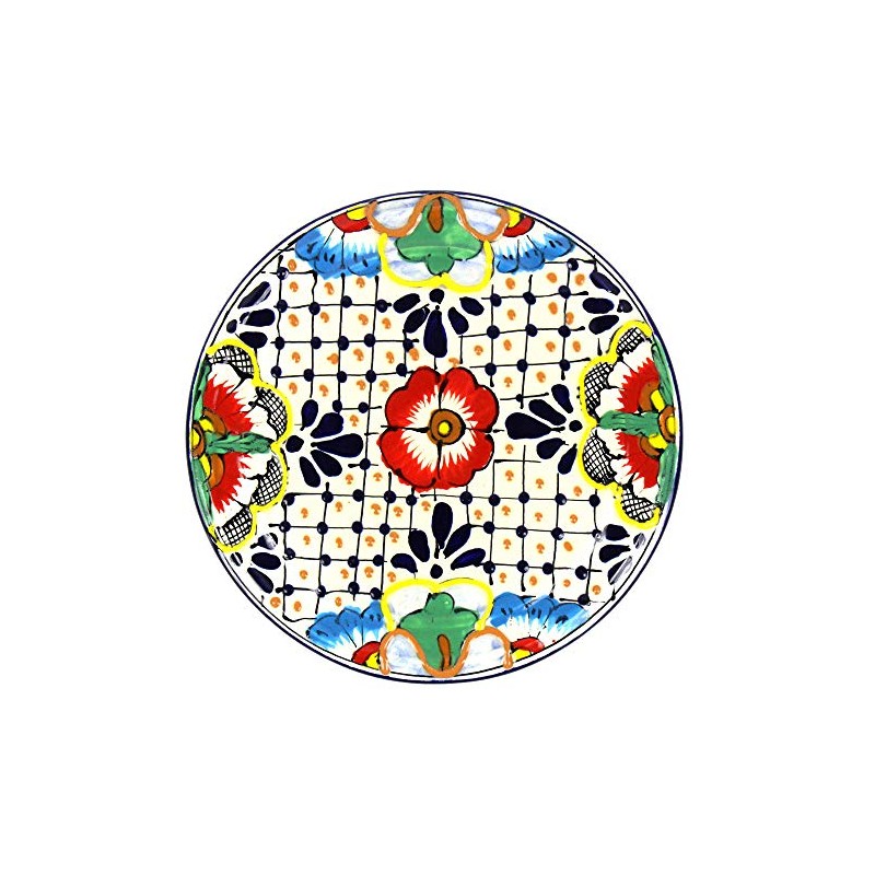 - Measures 8 inches in diameter and approximately a half inch in depth. |Lead-free dishwasher and microwave safe. Do not use in oven. | Any minor variances in the design simply attest to the handcrafted nature and individuality of these pieces. Please allow for slight color and design variations.