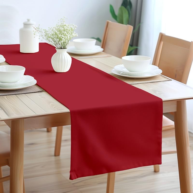 Encasa Homes Table Runner 13x120 in Long | Cotton Canvas Fabric | Deep Red Solid Color | Machine Washable & Durable