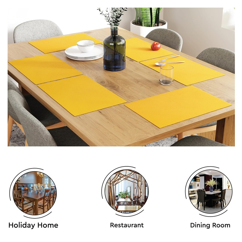 - MODERN COLORS & DESIGNS Available in multiple vibrant colors and designs, these placemats add a vibrant touch to any dining area. The yarn-dyed fabric ensures that the colour retains its visual appeal even after frequent washing.