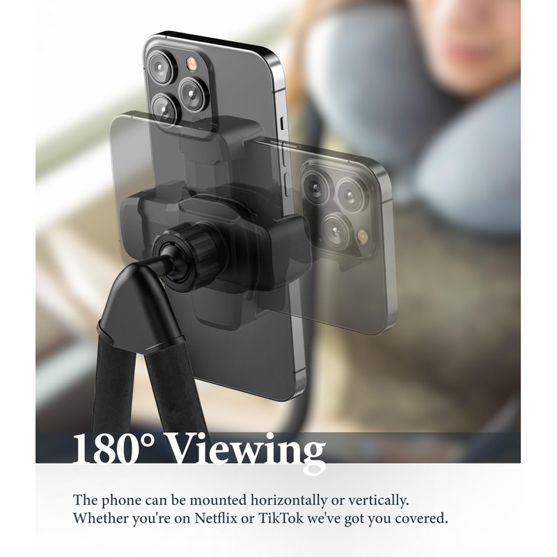 - Fully Ajustable: Flexible gooseneck mount is adjustable for the perfect viewing position. The phone can be mounted horizontally or vertically - so whether you're on Netflix or TikTok, we've got you covered.
