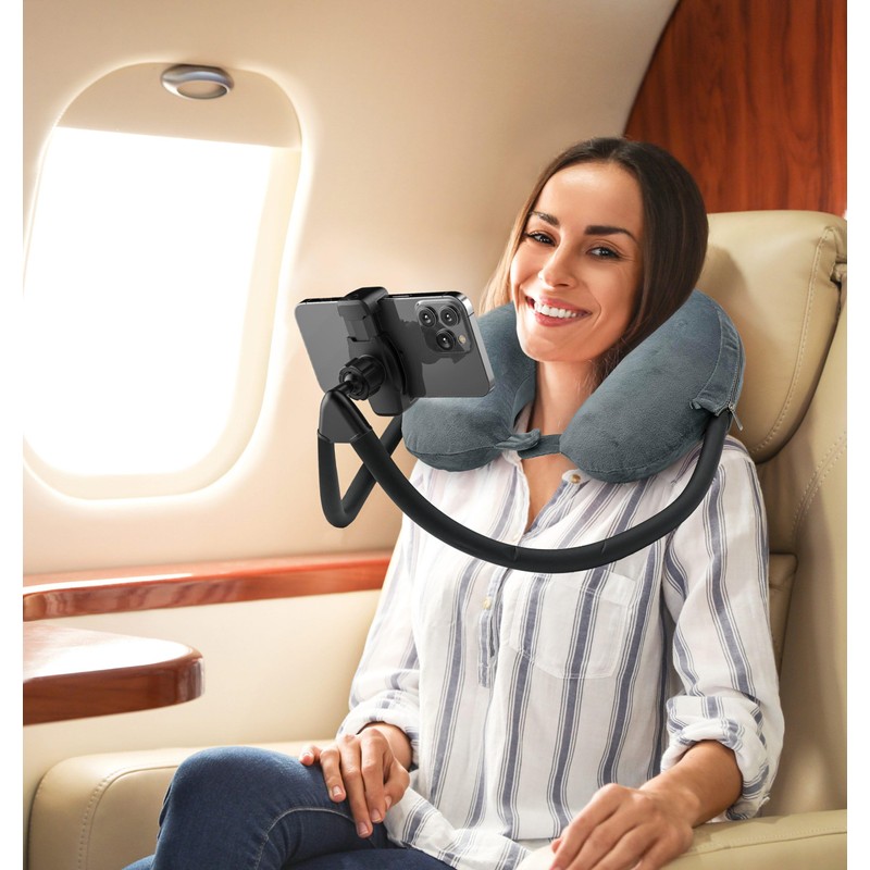 - Hands Free Viewing: with a built-in phone mount and a soft touch gooseneck, this neck phone holder makes it easy to rest your head in comfort while watching your favorite shows, hands free.