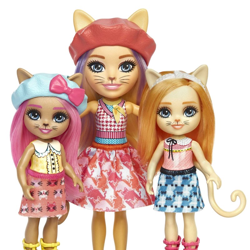 Enchantimals HHC11 - City Tails Siamese Cat Playset with Cat Girl Carmel Cat Doll, 2 Little Sisters, 3 Cat Figures, Includes Accessories, Toy for Children Ages 4 and Up