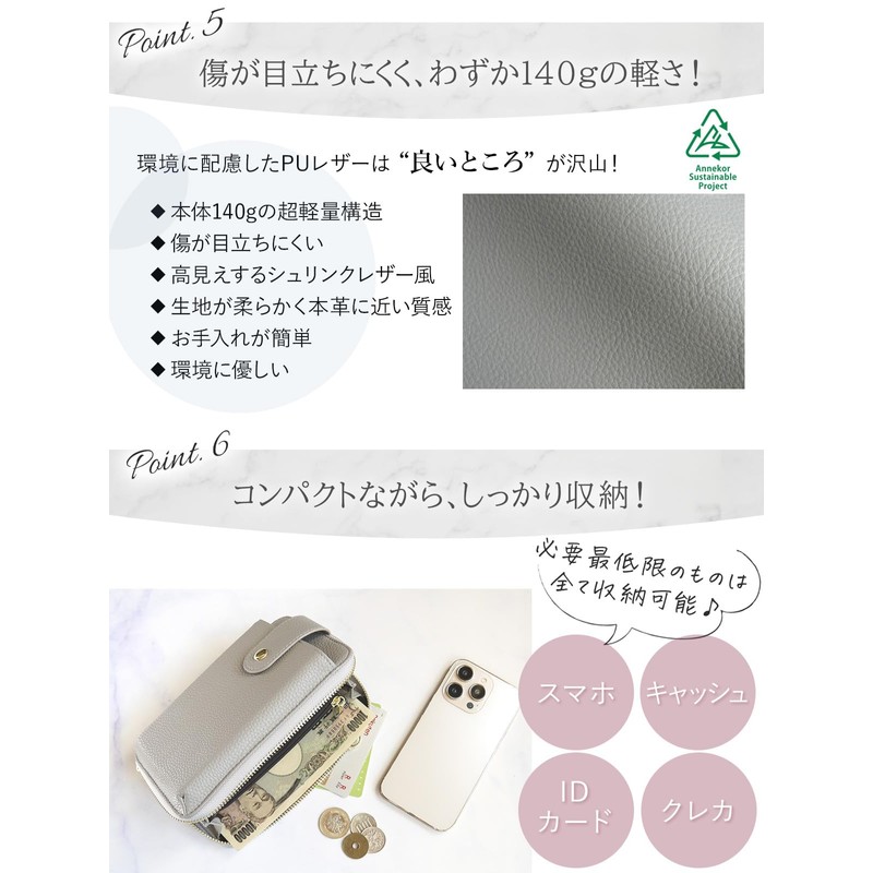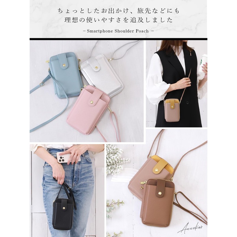 Convenient smartphone pouch for a quick out: Annekor smartphone pouch is a highly functional pouch that is convenient for small outings. In addition to storing your smartphone and small items, you can also store bills, receipts, and cards in place of a wallet or card case, so you can go out with this one piece. Also recommended as a secondary bag for travel.