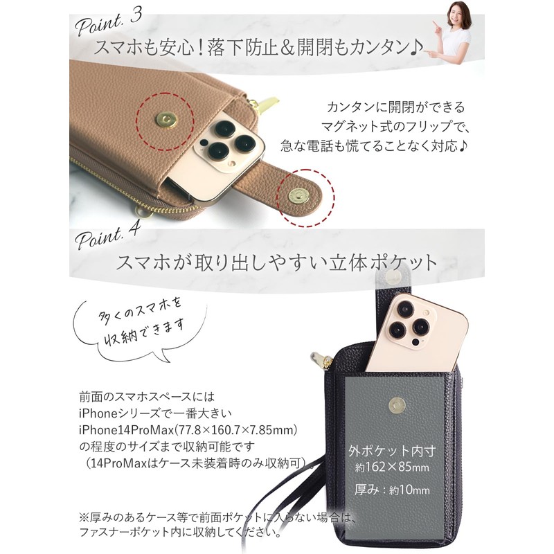 Vertical Smartphone and Small Pocket Horizontal: The main smartphone space is a vertical type that makes it easy to insert and remove the main smartphone space, and the flap has an easy-to-use magnetic button. In addition, the main space with the zipper is made horizontally to allow for easy access to small items.