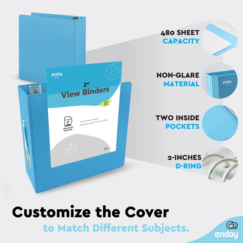 Enday 2 Inch 3 Ring Binder 2” Blue, Slant D-Ring 2 in binder Clear View Cover with ...