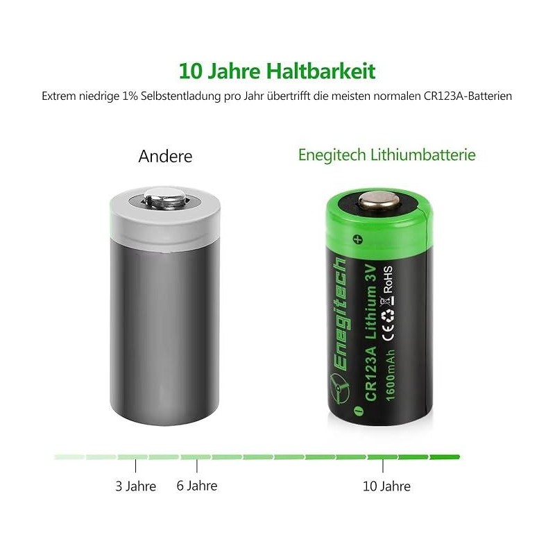 Full 10-Year Shelf Life – Use them right away or store them for a future emergency – you can be sure CR123a non-rechargeable batteries will remain just as fresh as the day you got them up to 10 years from now. With extreme temperature operation, Enegitech = always ready to go. Store at around 68°F for best results.