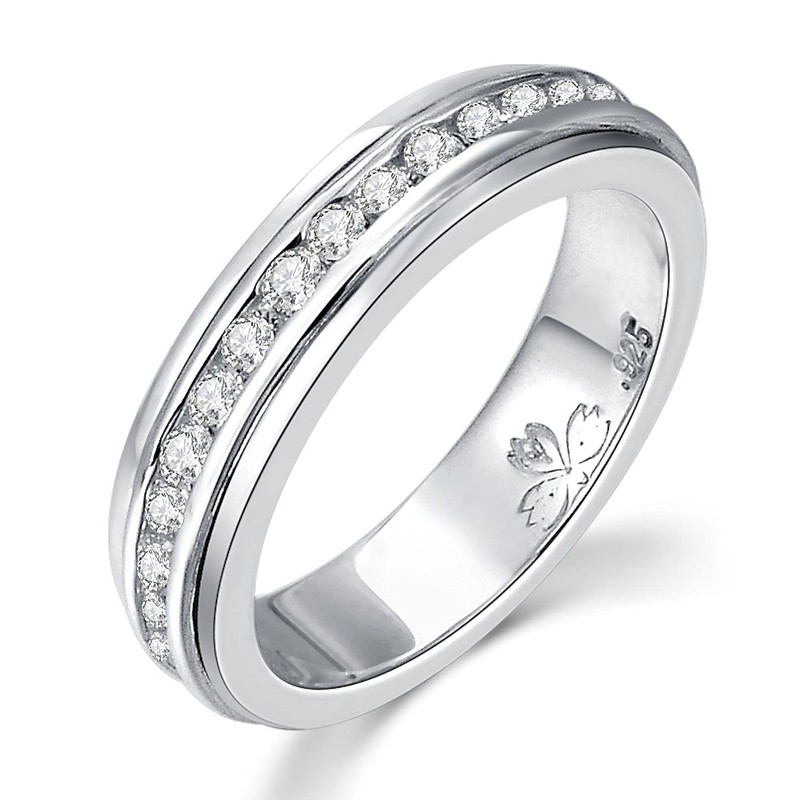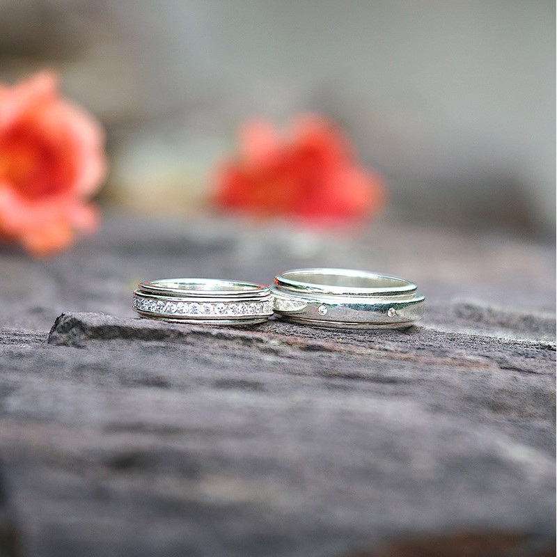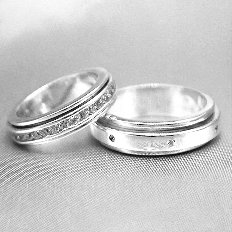 - Radiant joy – the spinner band is made of highly polished sterling silver and set with shiny, cleanly cut zirconia stones. This sits seamlessly on the sterling silver base ring and allows effortless spinning to reduce stress and tension.