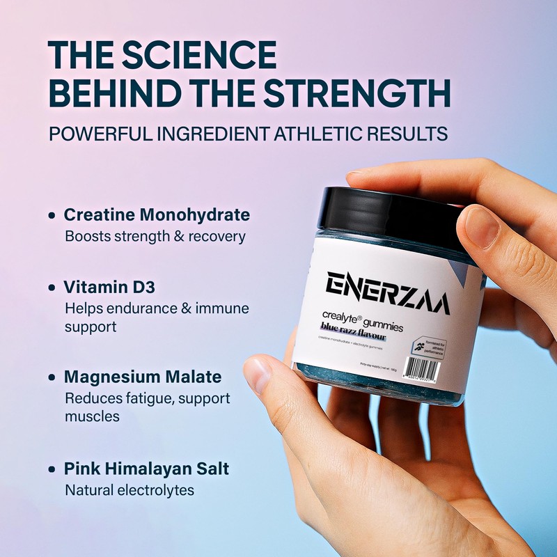 ENERZAA ENERZAA Creatine Complex Gummies ?C 4.5g Active Formula with Electrolytes ?C 2 Gummies per Day, 60 Count for Daily Wellness & Hydration (JAR, Blue Razz)