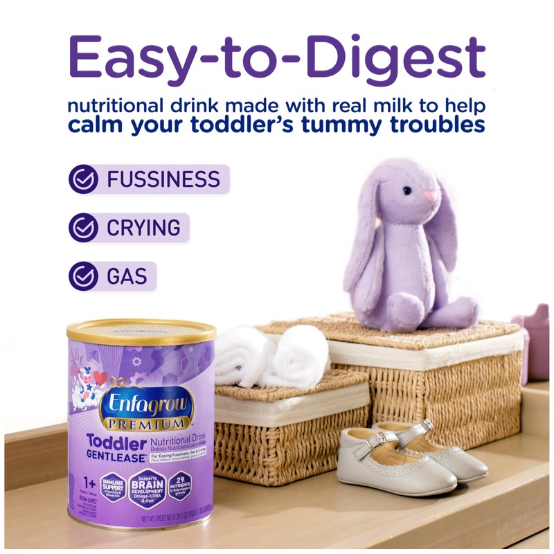 Enfagrow PREMIUM Gentlease Toddler Nutritional Drink, Made with Real Milk, Designed to Ease Fussiness, Gas & Crying, Brain-Building Omega-3, Nutrients for Growth & Immune Support, Powder Can, 29.1 Oz