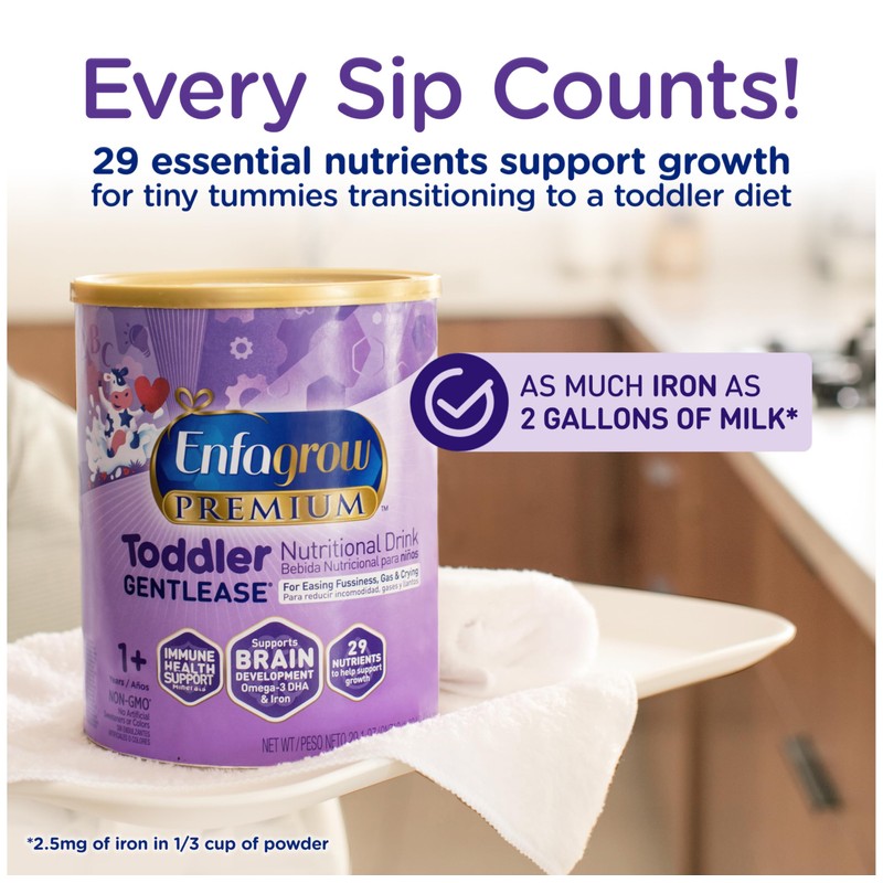 - BRAIN DEVELOPMENT: Enfagrow Premium Gentlease contains expert recommended omega-3 DHA and iron - two building blocks of a toddler's brain