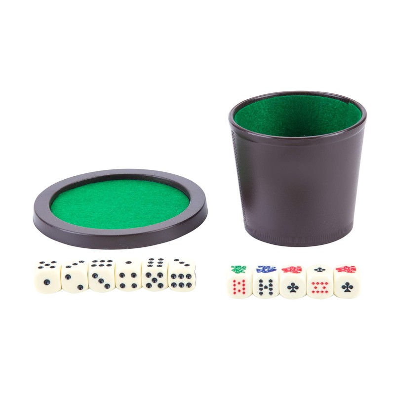 - Robust and practical with lid - with the 6 classic throws and 5 poker dice, all dice games are possible. Whether at the table, on the sofa, in the countryside, when camping. Any occasion and place is good to play dice