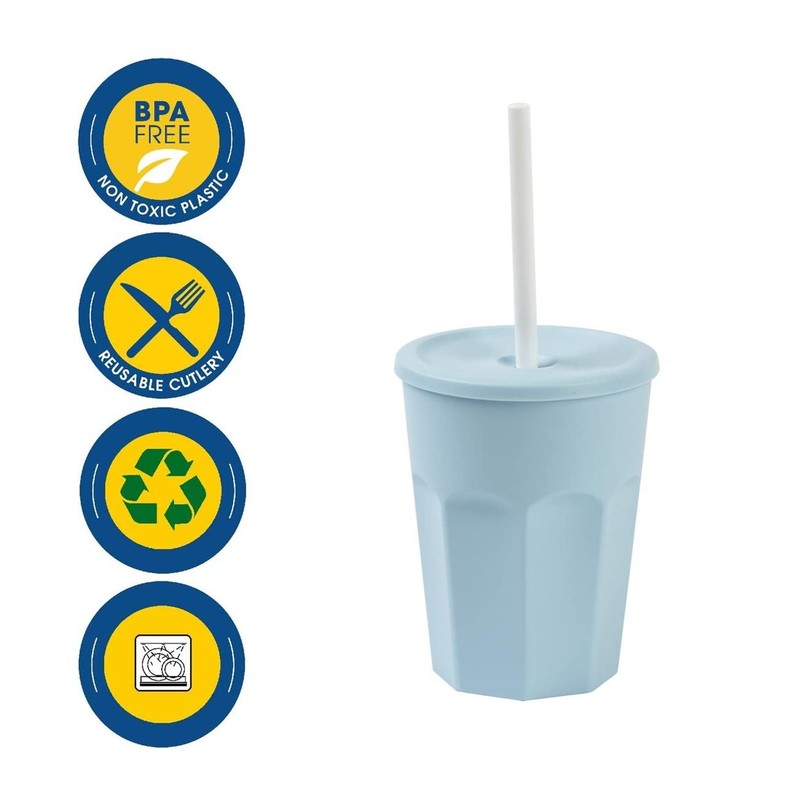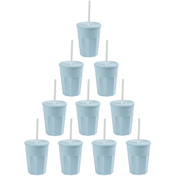 Engelland 10 x Plastic Cups with Lid and Straw, Drinking Cups, Plastic Cups, 0.25 L, Colour: Light Blue