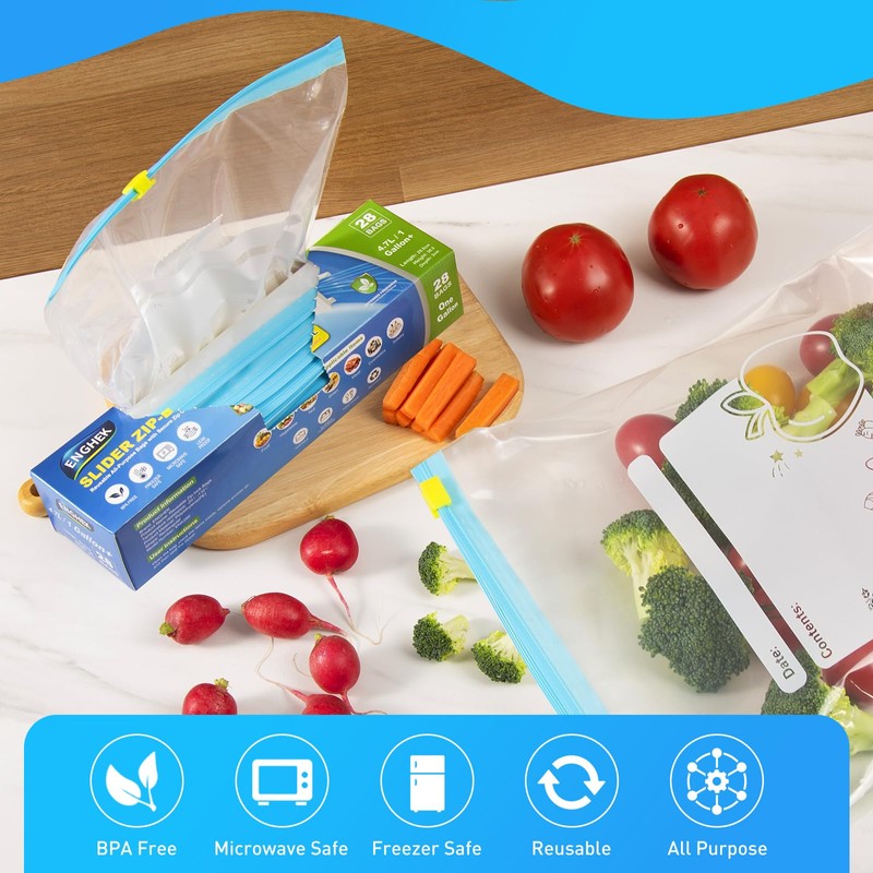 - Upgraded Sealing Technology: Our ENGHEK large ziplock bags feature advanced industrial-grade sealing, making them easy to use even for individuals with joint issues. The effortless slider ensures a 100% airtight seal every time, keeping your fridge neatly organised. This enhanced sealing technology helps extend food freshness, making it a reliable choice for preserving your items.