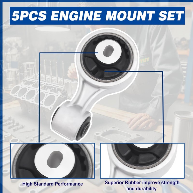 - Package: 1x Front Engine Mount Part Number# A4355HY, 9808, EM5869 1x Rear Engine Mount Part Number# A4356HY, 9807, EM5870 1x Front Right Engine Mount Part Number# A4365HY, 9625, EM5867 1x Transmission Mount Part Number# A7361, 9460, EM9460 1x Front Right Torque Strut Mount Part Number# A7363, 9545, EM9545