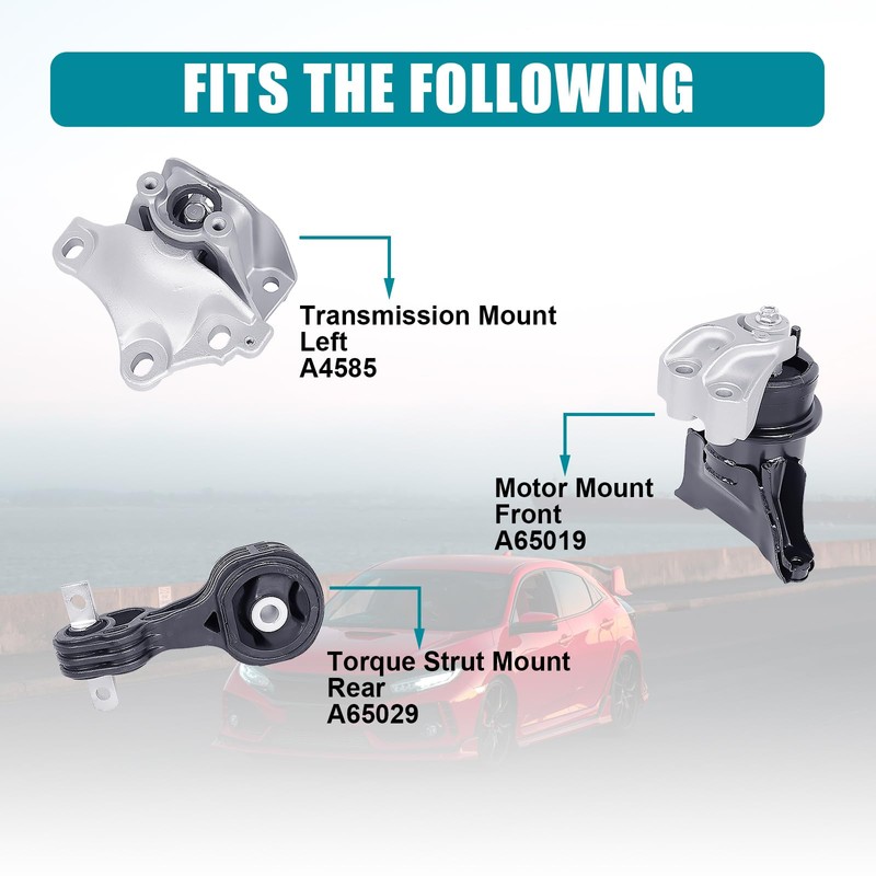 Engine Motor & Transmission Mount Kit 3pcs Compatible with Fits 2006-2011 Honda Civic Hybrid 1.3L Replace A65019 A65029 A4585