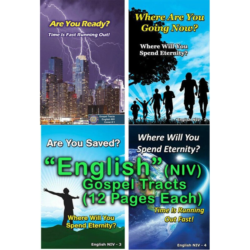 "ENGLISH" Gospel Tracts(NIV), PACK of 40 in 4 Covers, 12 Pages Each.