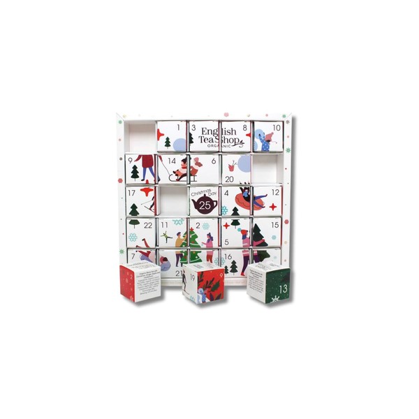 Embrace the holiday spirit with this premium selection of organic teas, perfect for warming your soul this festive season. Inside each compartment of this beautifully crafted advent calendar, you'll discover 25 unique loose leaf tea pyramid bags, each offering a delightful blend that brings the traditional flavors of the holidays to life.
